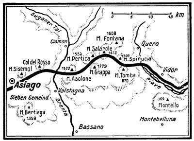 östlich von Asiago bis zur Brenta mit starken Kräften an. Am Monte
