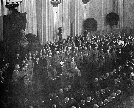 Worte vom 4. August 1914: "Ich kenne keine Parteien, ich kenne